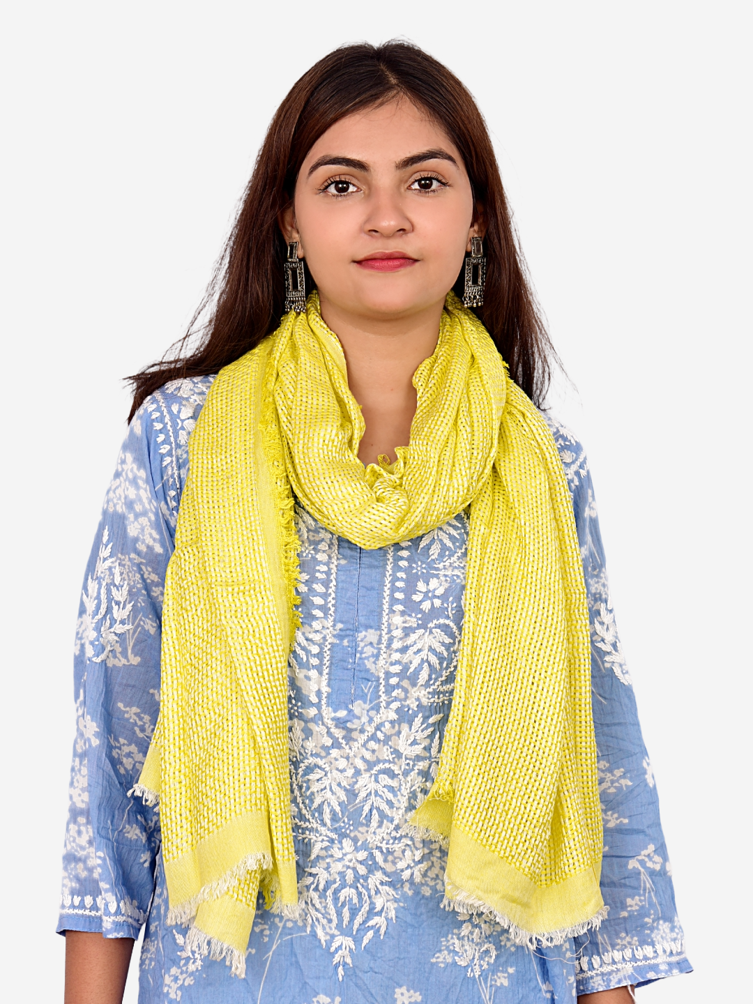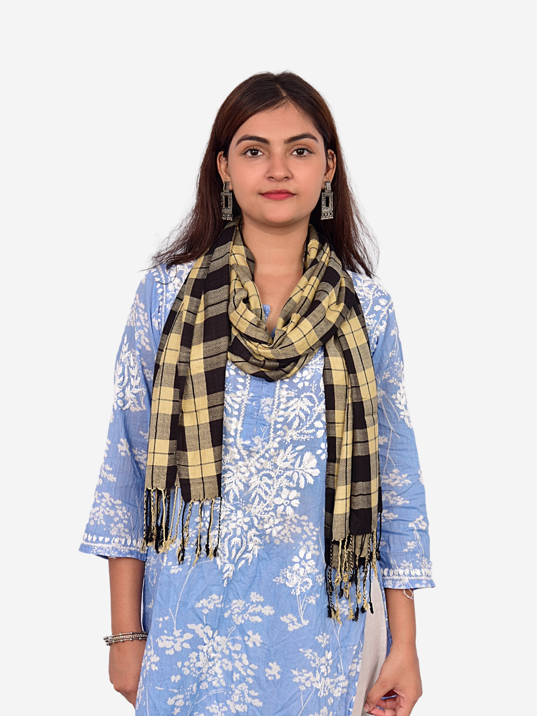 Green Checked Stole: Elegant mix of green and blue checks, perfect for adding a fresh touch to any look.