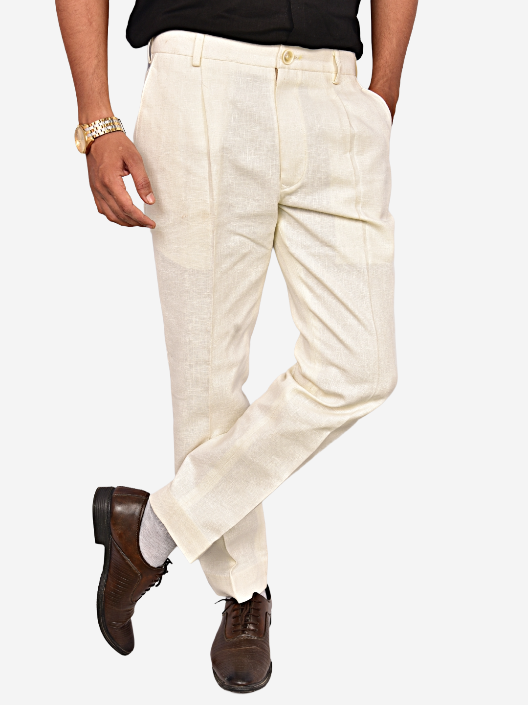 Men’s Khadi Cotton Formal Pants – Off White Handloom Trousers