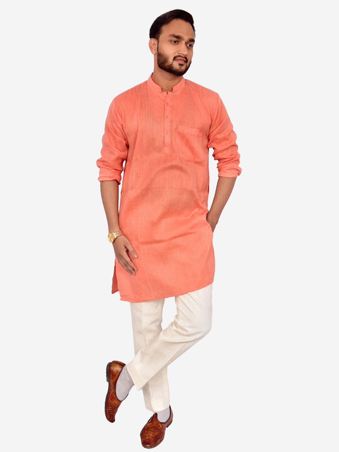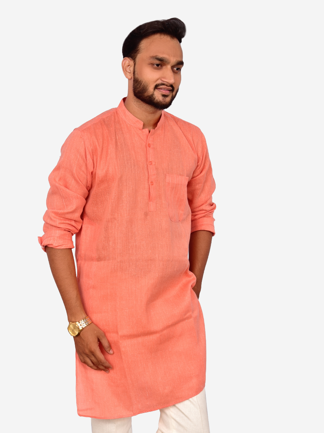 Men’s Khadi Cotton Kurta – Peach Handloom Kurta