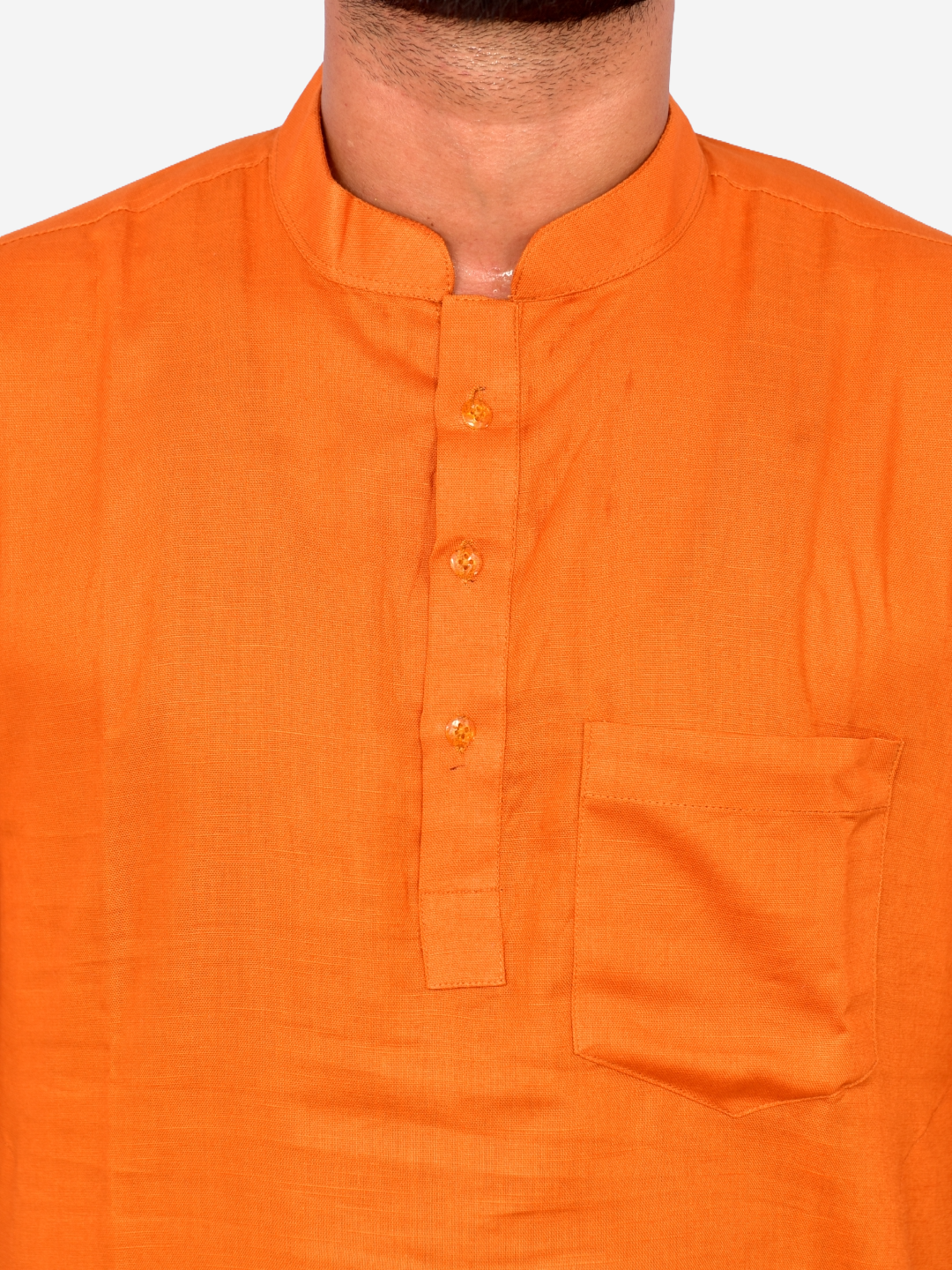 Elevate traditional style with this men’s rust orange kurta, crafted from a breathable cotton blend for lasting comfort. The elegant mandarin collar, buttoned placket, and chest pocket add classic touches, while the full sleeves and straight cut ensure a flattering, relaxed fit. Suitable for festive occasions, ethnic events, or casual outings, this kurta pairs well with white or cream trousers for a stylish contrast.