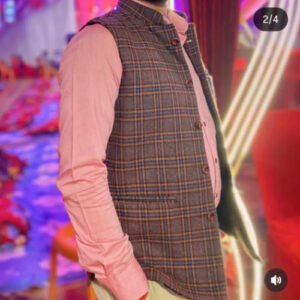 Men’s Peach Mandarin Collar Cotton Shirt