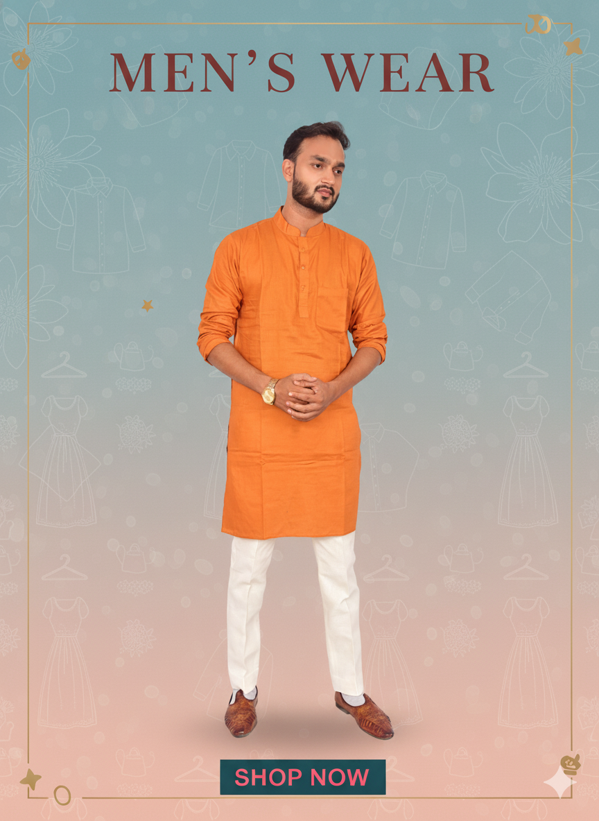 Men’s Rust Orange Cotton Kurta